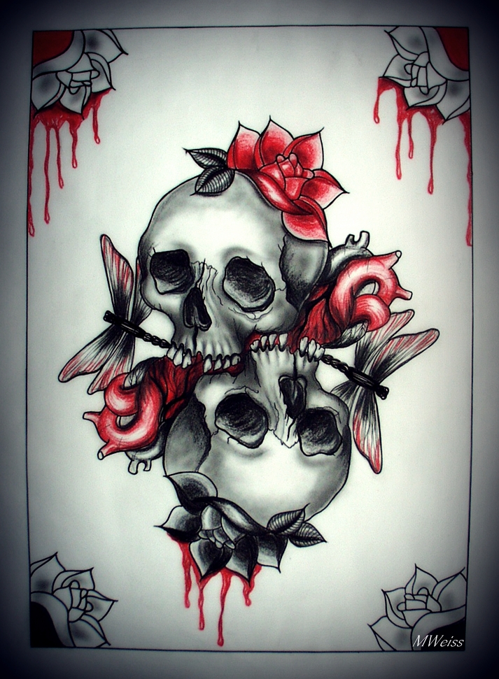Love You To Death Tattoo Flash Skulls By Mweiss Art On Deviantart