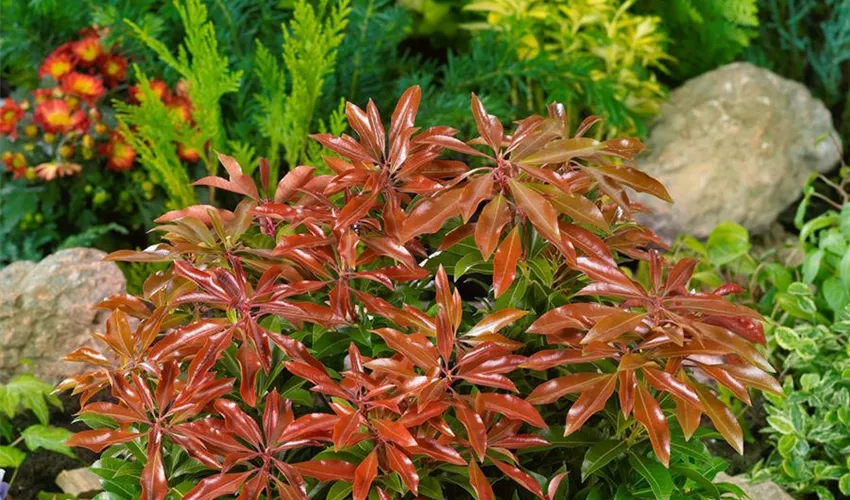 Pieris Mountain Fire Red And Green Shiny Foliage Plantingtree